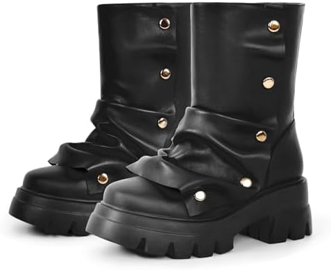 Discover the perfect blend of style and comfort with our platform heels stretch pull-on ankle boots. Designed with detachable snap buttons and a unique fold-over mid-calf-height shaft, these slouchy ruched boots elevate your fashion game effortlessly.