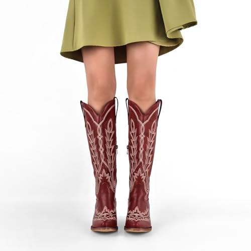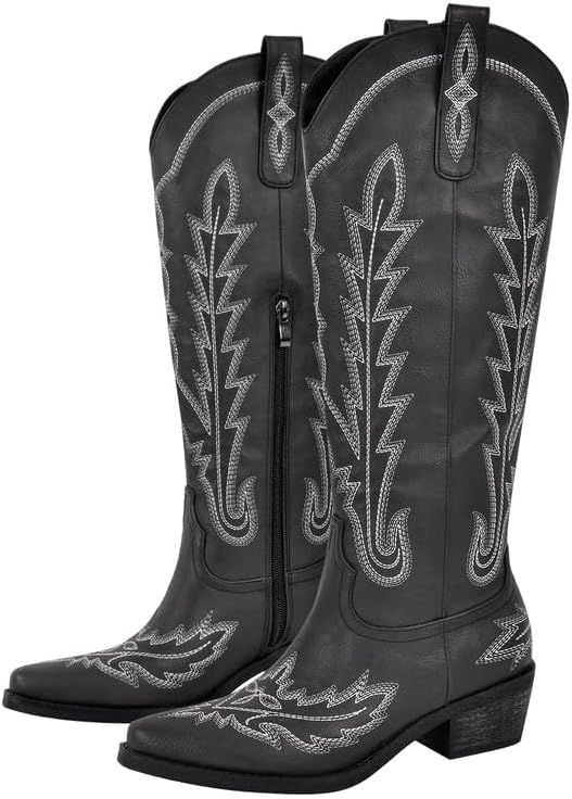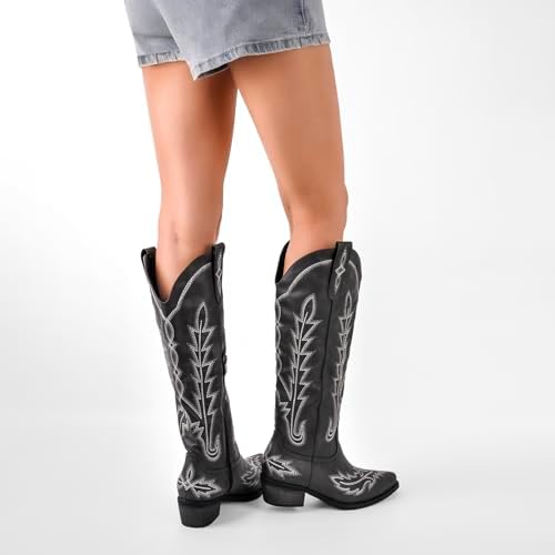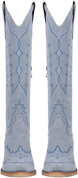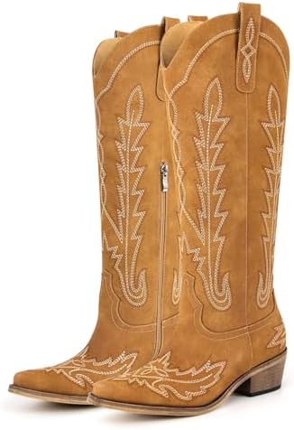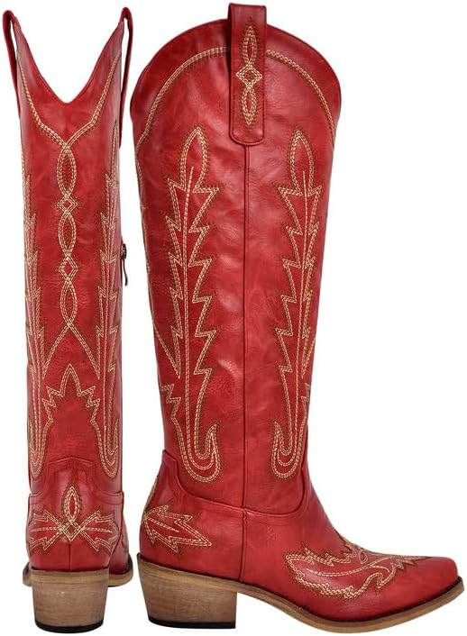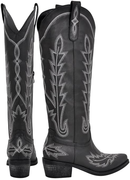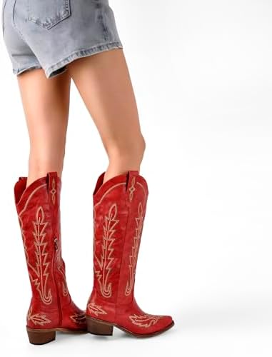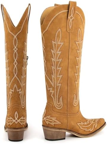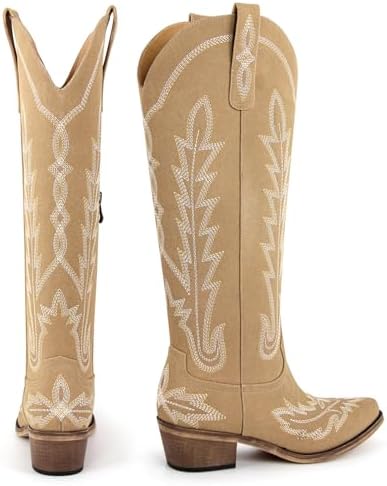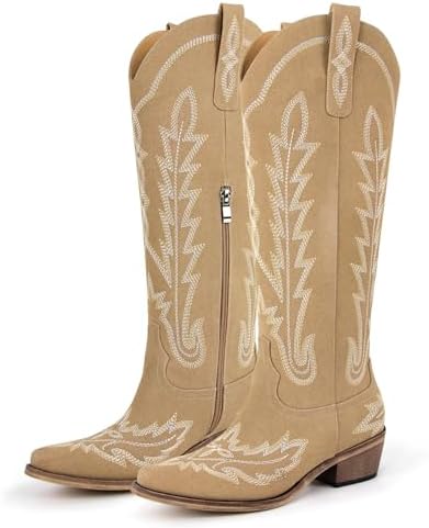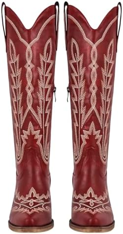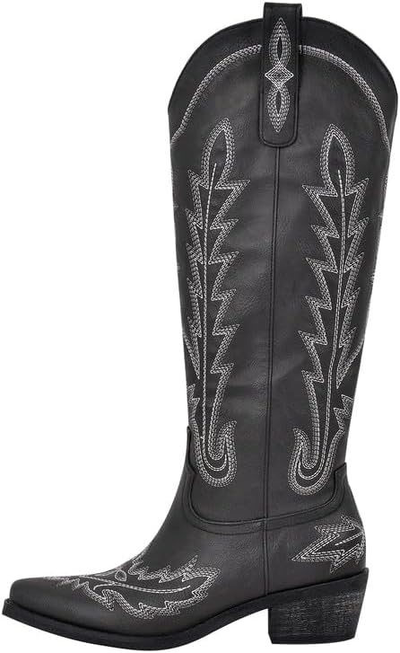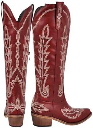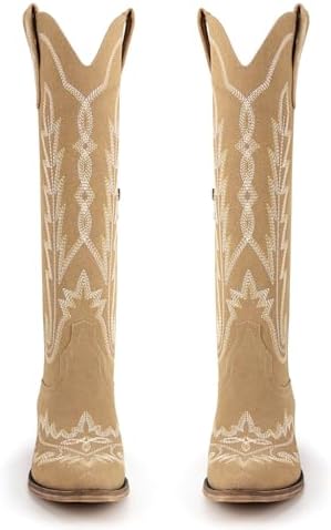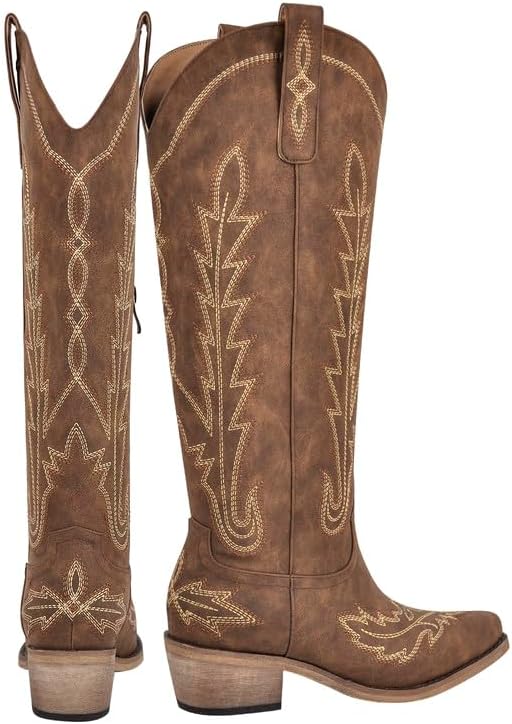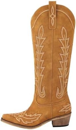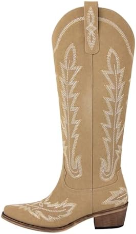 sexytag Cowboy Boots for Women | Knee High Cowgirl Boots | Wide Calf | Embroidered Western Design | Stylish and Comforta