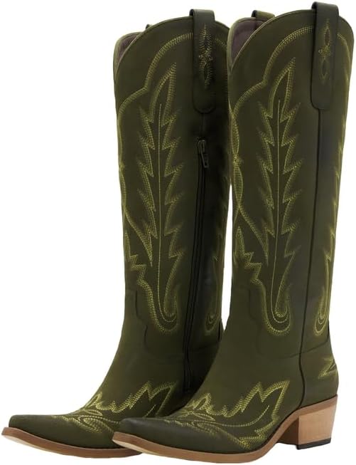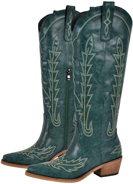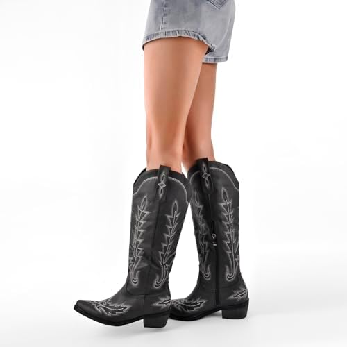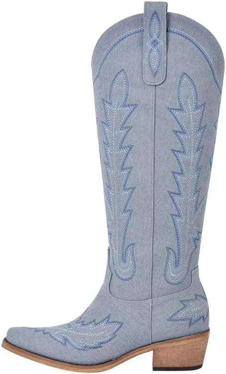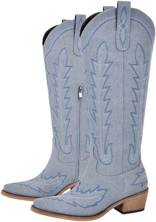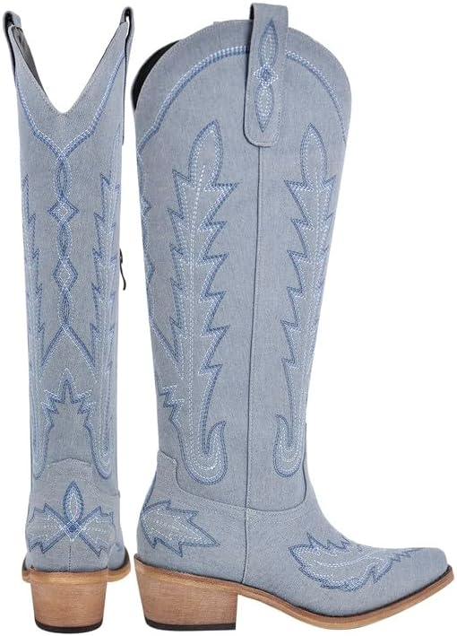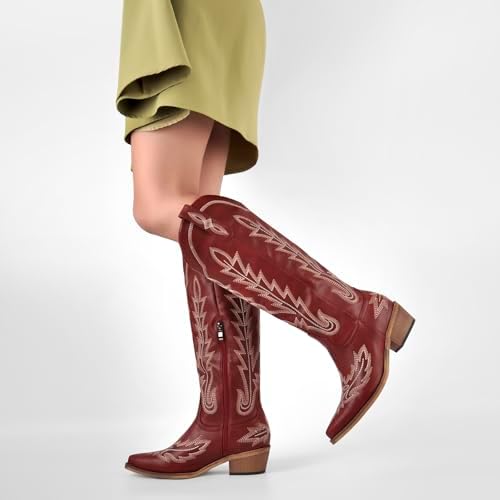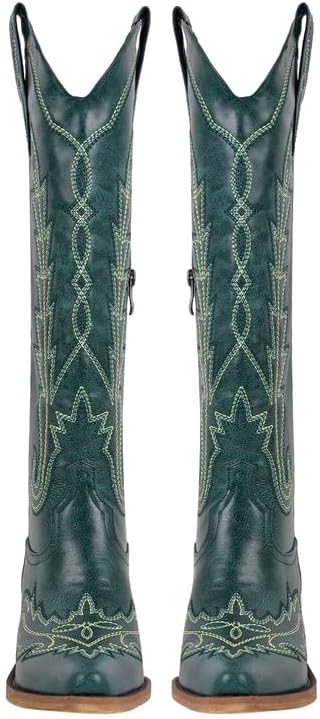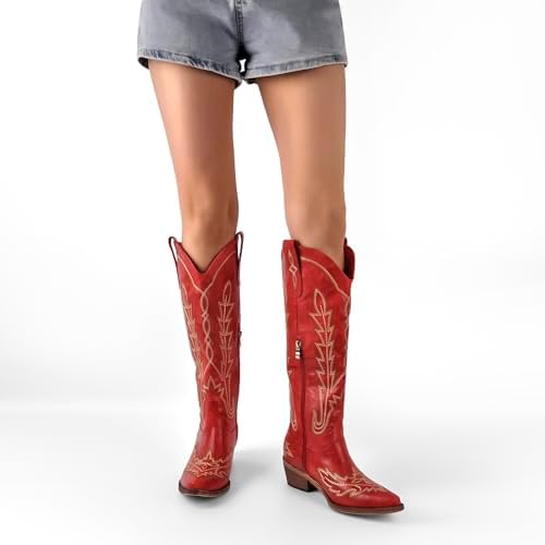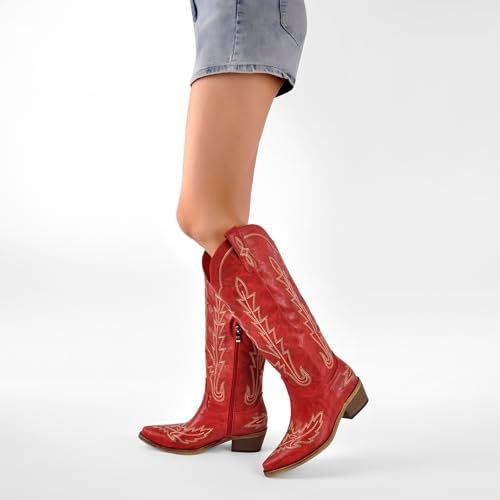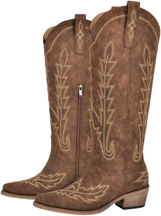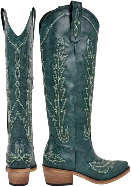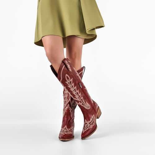 sexytag Cowboy Boots for Women | Knee High Cowgirl Boots | Wide Calf | Embroidered Western Design | Stylish and Comforta