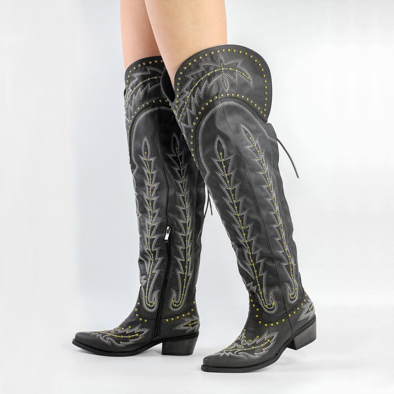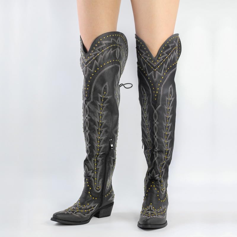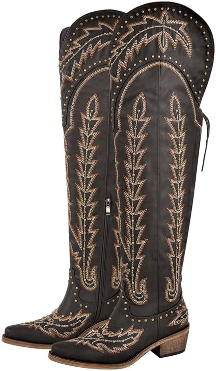 These thigh-high cowboy boots provide all-day comfort, allowing you to shine wherever you go. They are not just a fashion statement; they are functional and comfortable for everyday wear.