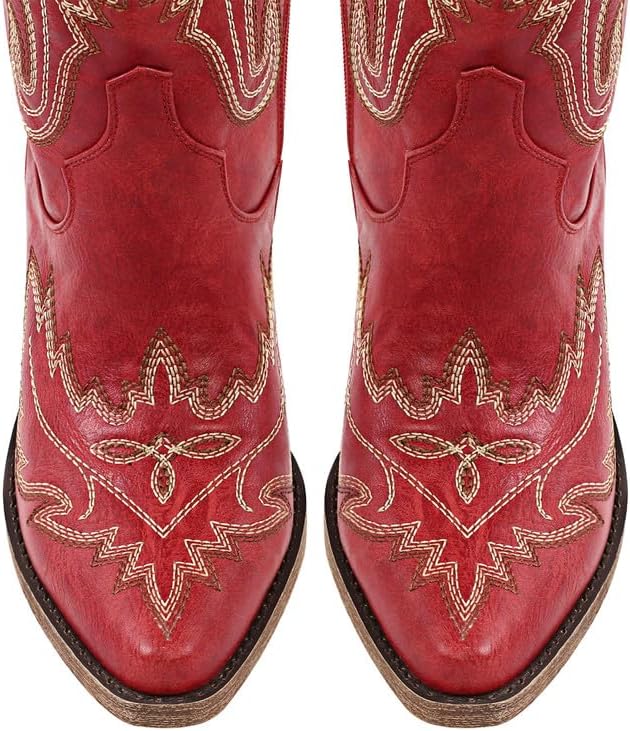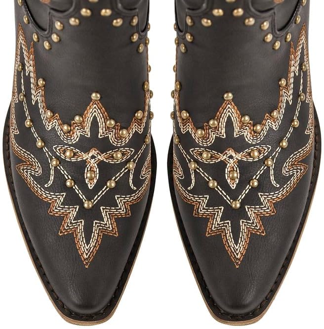 These Western boots are elegantly decorated with intricate embroidery. Their comfortable low block chunky heels and adjustable back lace design ensure a perfect fit, whether you pull them on or off easily thanks to the convenient side zipper.