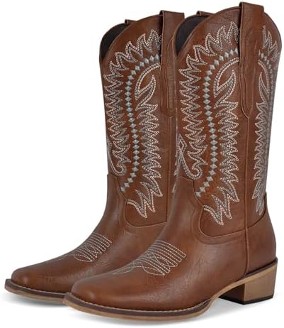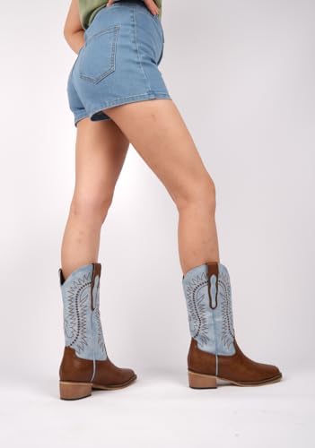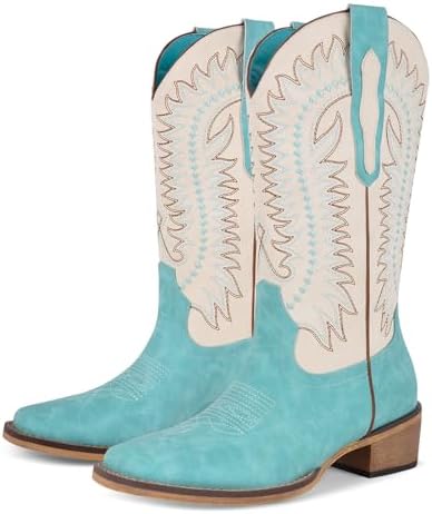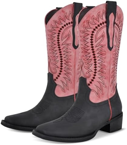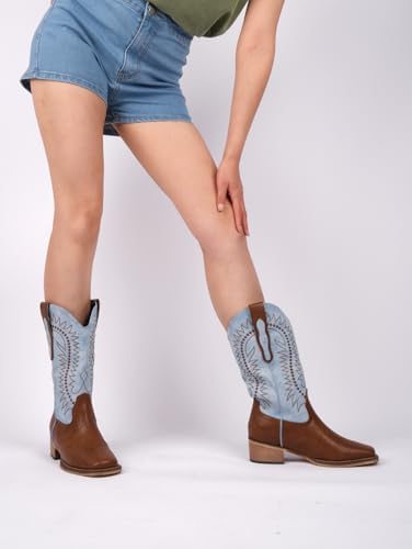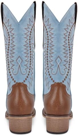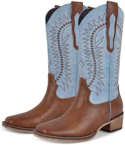 sexytag Embroidered Cowboy Boots for Women – Two-Tone Square Toe Cowgirl Boots for Fashion Forward Western Style, Stylis