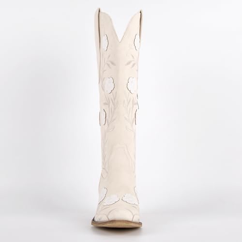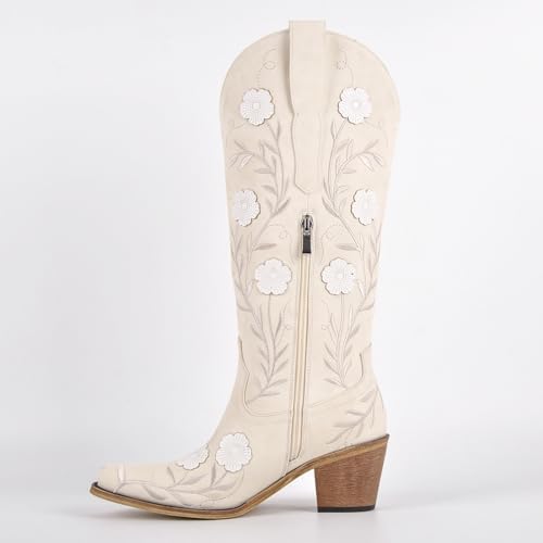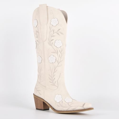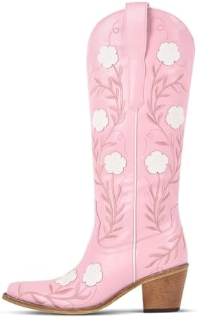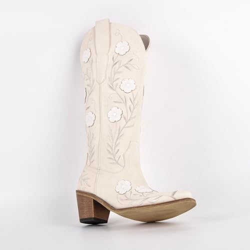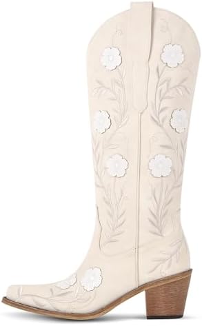 SexyTag Women’s Embroidered Floral Western Cowboy Wedding Boots | Wide Calf Cowgirl Mid-Calf | Stylish Pull-On Design |