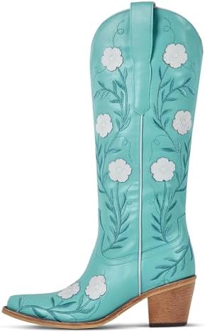 These cowgirl boots showcase stunning floral embroidery, creating a feminine and elegant Western aesthetic that enhances any outfit.