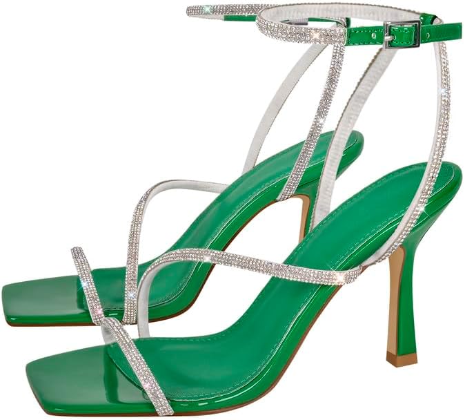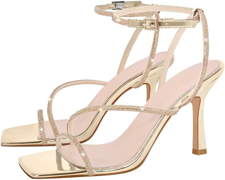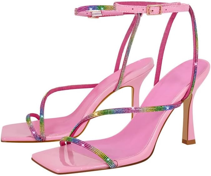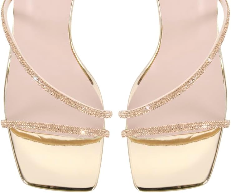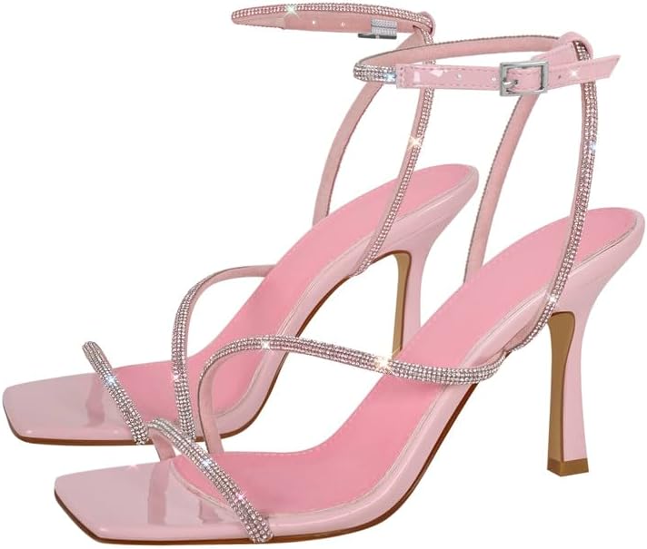 Feature: These stunning heels feature a rhinestone-studded strap and a square open toe design adorned with dazzling diamonds. Perfectly suited for women, girls, sisters, girlfriends, and wives, these heels add glam to any outfit.