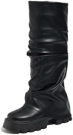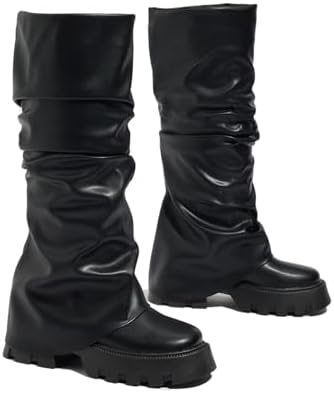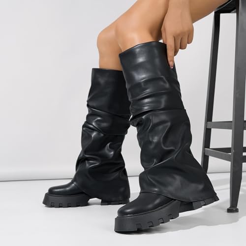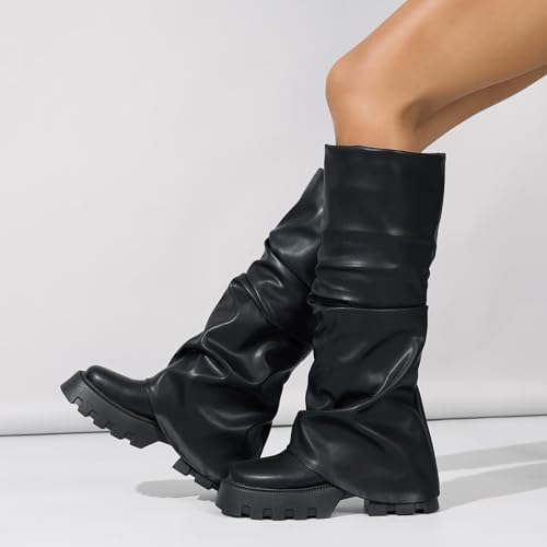 Tasteall Platform Knee High Boots for Women | Slouchy Ruched Design | Wide Calf | Trendy Fold Over Style | Perfect for C