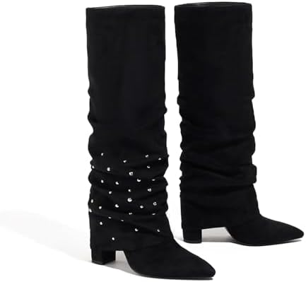 Experience a fashion-forward vibe with these women’s boots, featuring a striking slouchy silhouette and rich ruched texture. The fold-over shaft enhances the oversized aesthetic, providing you with versatile styling options for any occasion.